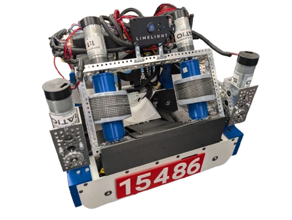 Our Decode robot was designed to keep our small footprint while retaining our belt driven Mecanum wheels for fast movement and rapid directional control. Seventy percent of the components are 3D printed parts to allow our team to modify and improve the design as we prepared for competition. To help with autonomous and tele-op a Limelight system was added to supplement our Pinpoint device to read all competition tags to locate our position on the field. Due to our small robot size, we implement dual intakes on both sides of the shooter to pick up artifacts quickly and efficiently.
